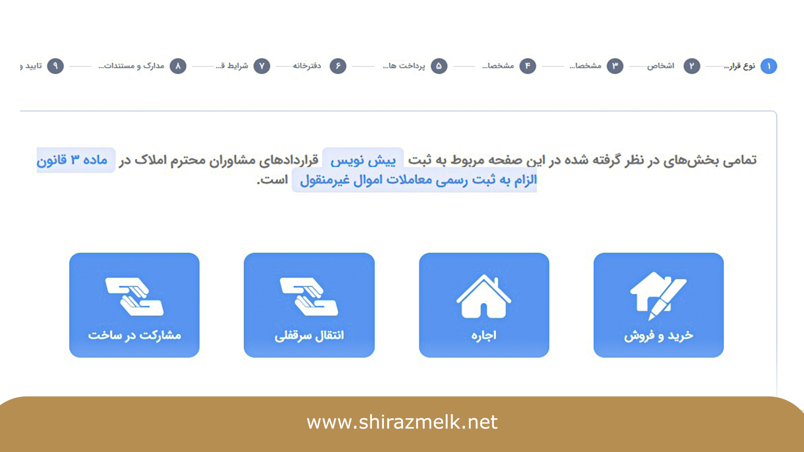 مشاورین محترم املاک جهت ثبت قرار داد و پیش نویس در ابتدا میبایست در این سامانه ثبت نام کنند .