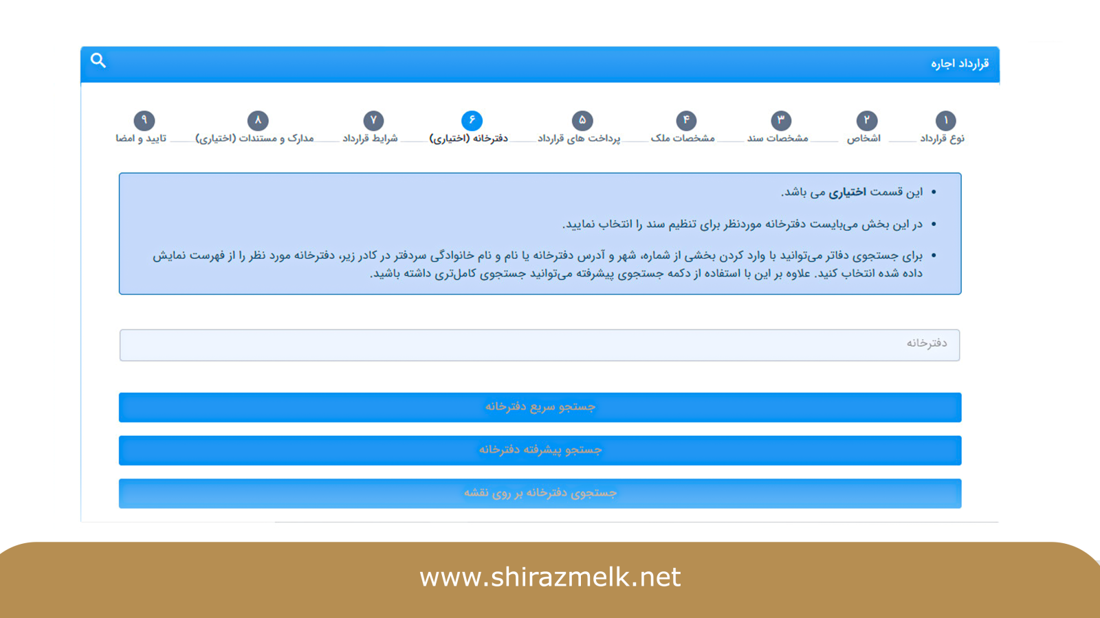 - در این بخش میبایست دفترخانه موردنظر برای تنظیم سند را انتخاب نمایید.